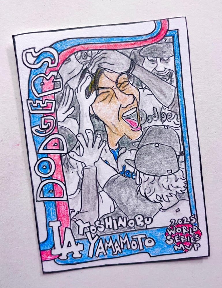 Original pencil artwork—Yoshinobu Yamamoto, World Series MVP